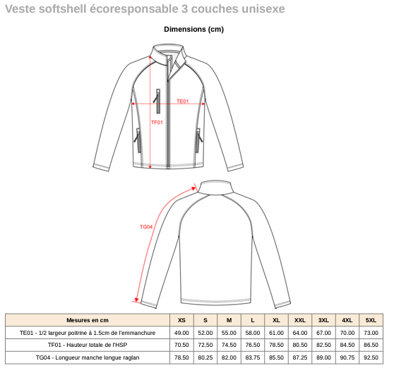 Personnalisation par broderie pour l'avant et le dos et par transfert sérigraphique pour les manches.