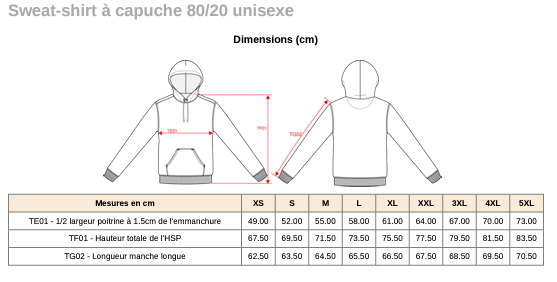 80% coton / 20% polyester. Confection 3 fils LSF (Low Shrinkage Fleece) : surface extérieure 100% coton.