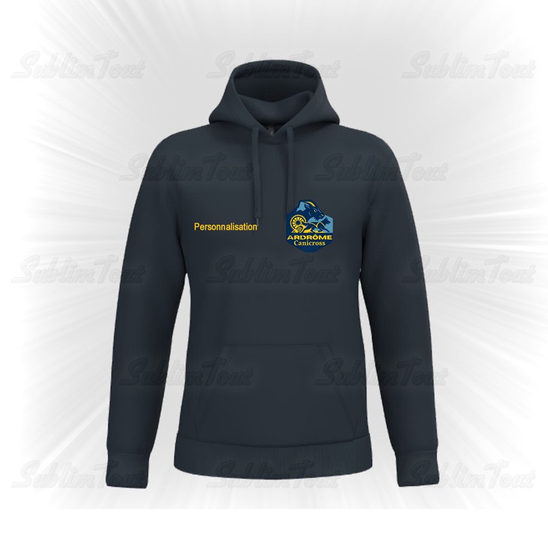 Sweat à capuche noir adulte aux couleurs de ArDrôme Canicross.