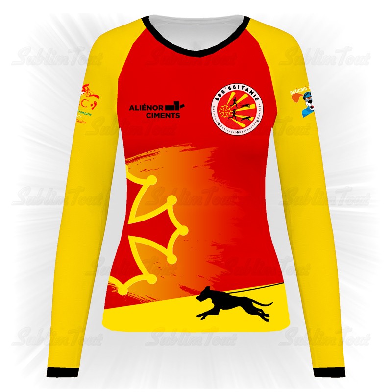 Tee shirt adulte manches longues entièrement personnalisé aux couleurs des Dog'ccitanie.