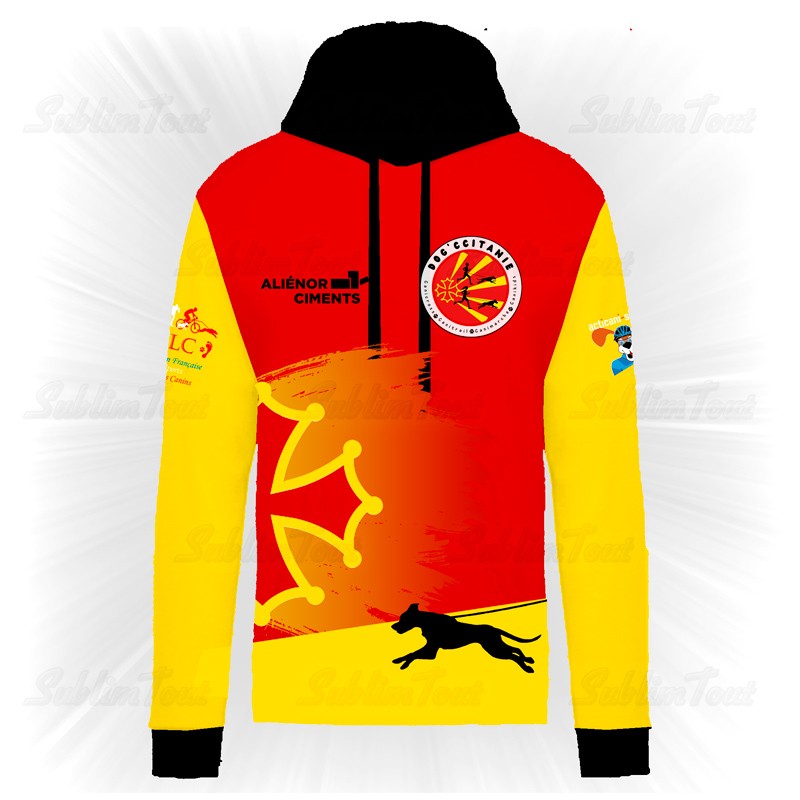 Sweat à capuche unisexe adulte entièrement aux couleurs des Dog'ccitanie.
