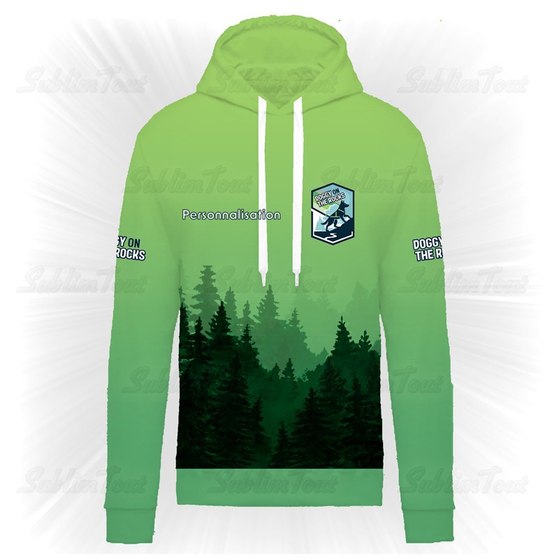 Sweat à capuche unisexe adulte entièrement aux couleurs des Doggy On The Rocks.