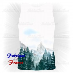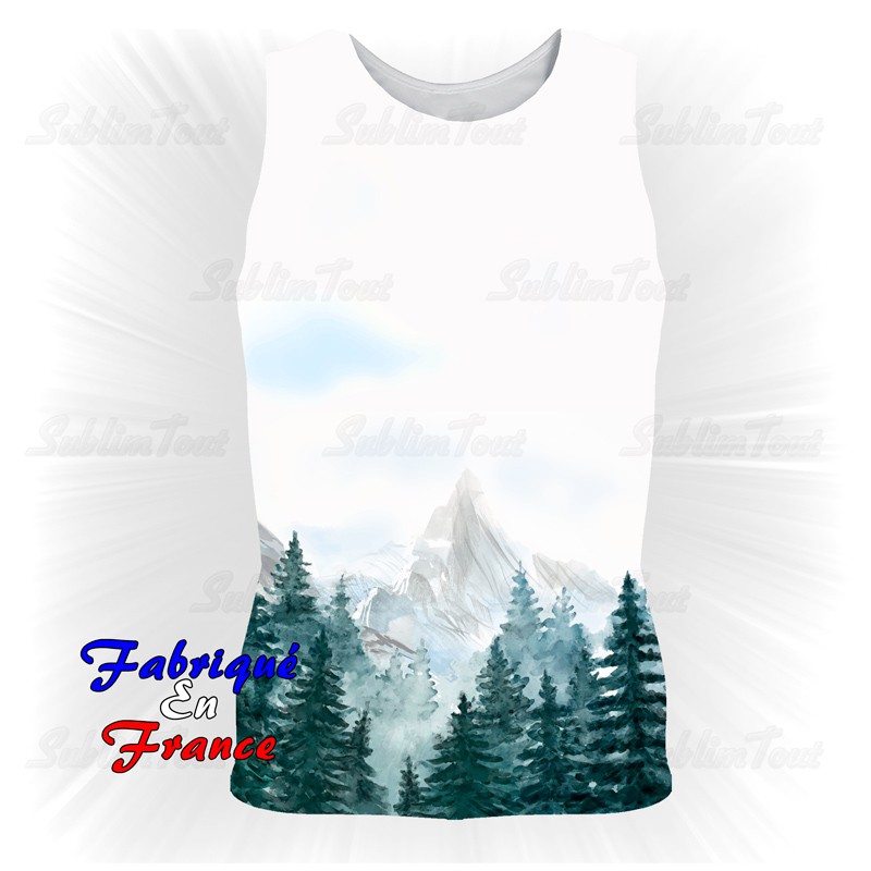 Débardeur entièrement personnalisé sur le thème des montagnes et des sapins.