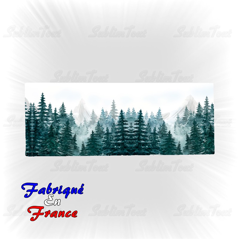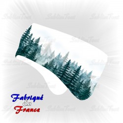 Bandeau de sport entièrement personnalisé sur le thème des montagnes et des sapins..