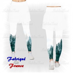 Legging de sport unisexe entièrement personnalisé sur le thème des montagnes et des sapins.
