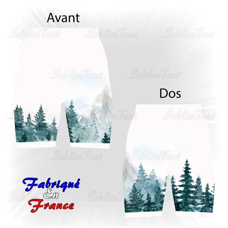 Short de sport unisexe entièrement personnalisé sur le thème des montagnes et des sapins.