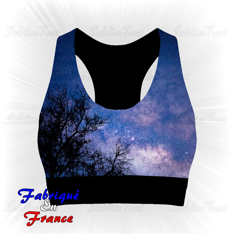 Brassière entièrement personnalisé avec un motif dans le thème de la voie lactée.