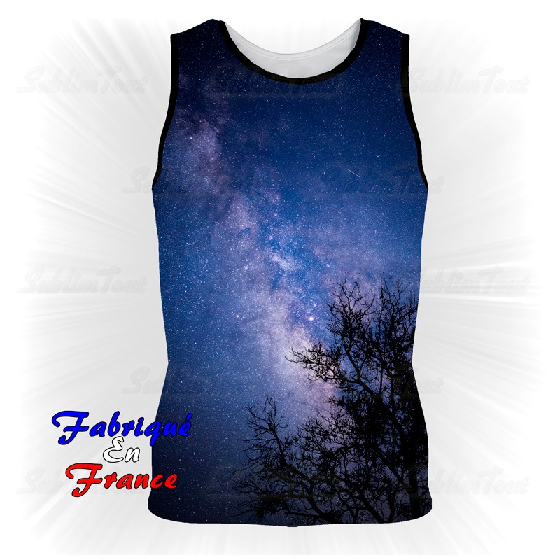 Débardeur entièrement personnalisé sur le thème de la voie lactée.