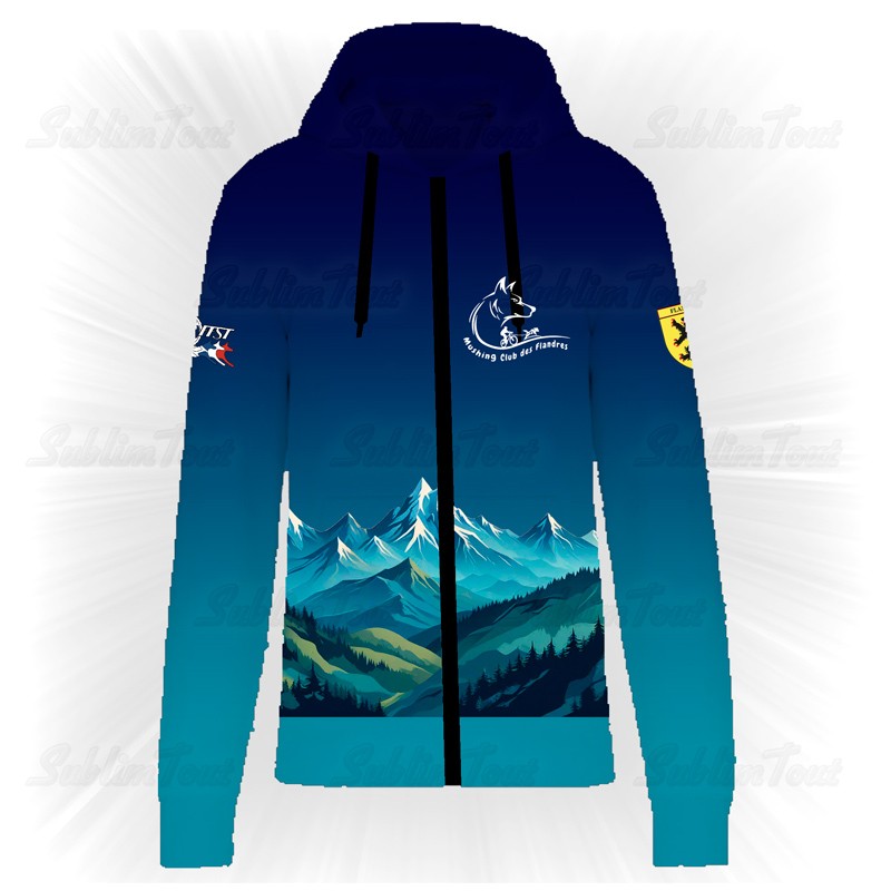 Sweat à capuche zippé unisexe adulte Aux couleurs du Mushing Club des Flandres.
