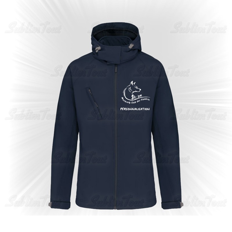 Veste softshell à capuche aux couleurs du Mushing Club des Flandres.