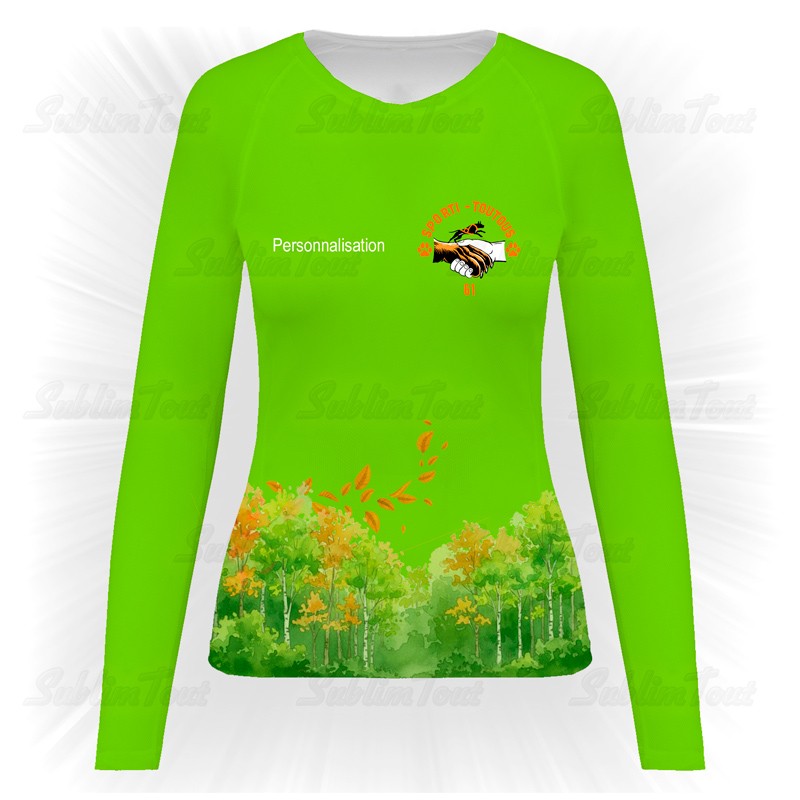 Tee shirt manches longues sport en polyester 100% personnalisé.