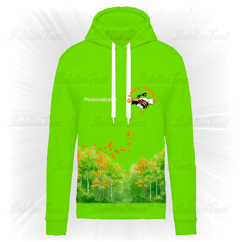 Sweat à capuche unisexe adulte entièrement aux couleurs des Sporti-Toutous 61.