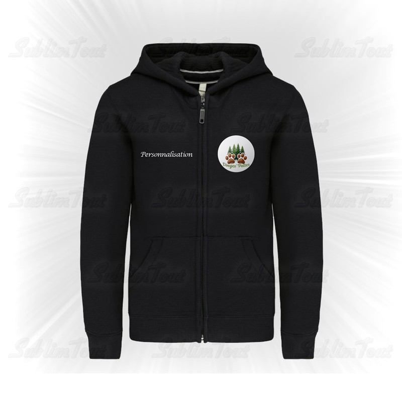 Sweat-shirt à capuche zippé enfant aux couleurs de s Vosges'Pattes.
